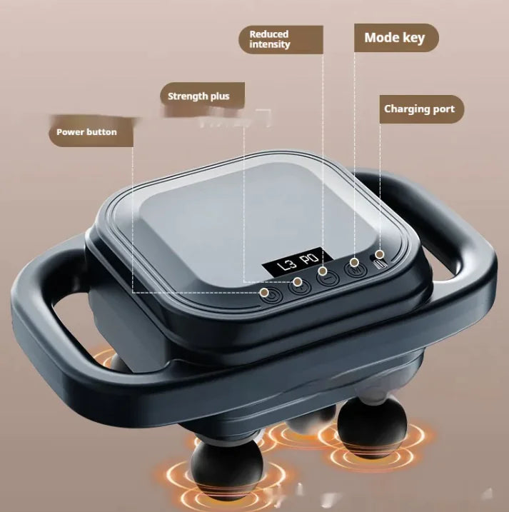 A powerful 8-head massage gun featuring hot compress therapy for deep relaxation. Designed for household use, this massager provides targeted relief for sore muscles, tension, and fatigue with adjustable intensity settings. The heat function enhances circulation, helping to reduce stiffness and promote faster recovery. Whether for post-workout recovery, stress relief, or daily relaxation, this massage gun is your go-to solution for full-body comfort.